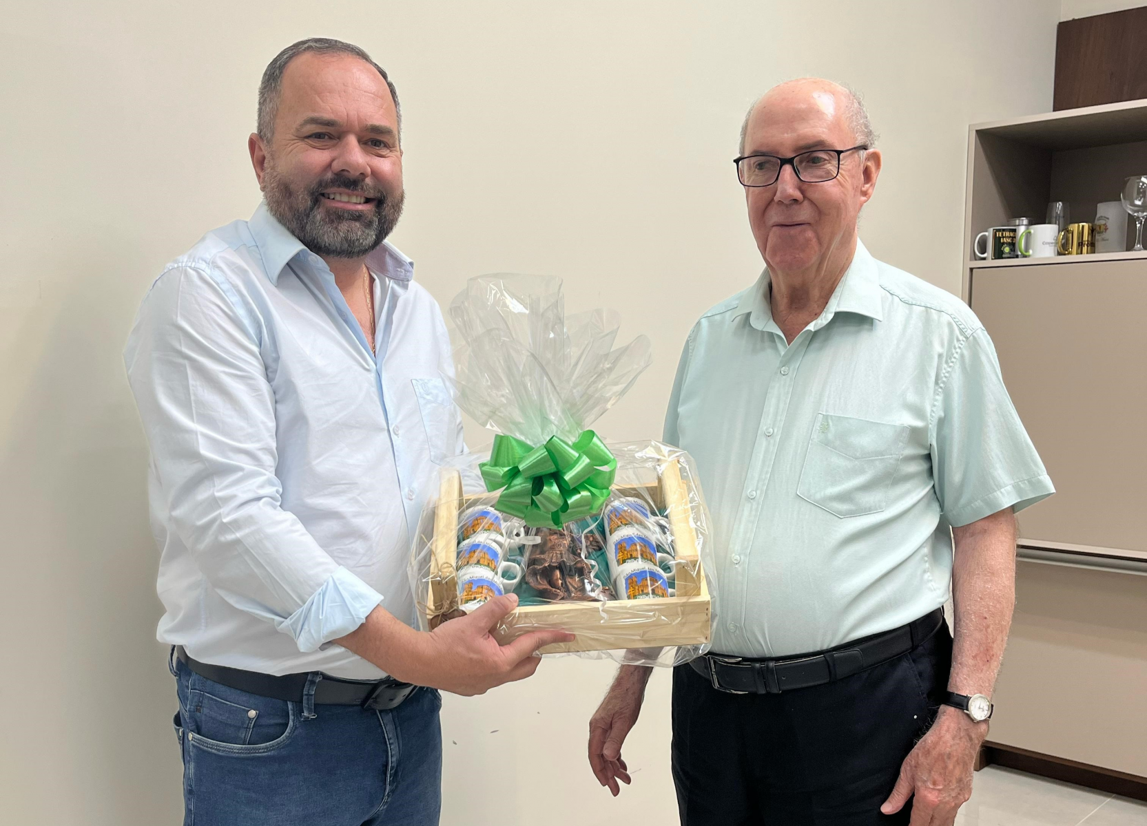 Nesta terça-feira (18), o presidente da Associação dos Municípios das Missões (AMM), Rodrigo Ribas, visitou a sede da Cermissões, em Caibaté, em homenagem aos 64 anos da cooperativa, fundada em 18 de fevereiro de 1961. Ele foi recebido pelo presidente da Cermissões, Diamantino Marques dos Santos, que há 38 anos lidera a cooperativa.