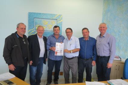(direita) Prefeito de Cero Largo, Valter Spies; vice-presidente da AMM e prefeito de Rolador, Paulo Peixoto; empresário Eleonor Becker; diretor do Detur e prefeito de São Nicolau, Ricardo Klein; secretário e coordenador da Comissão, Ovídio Kaiser; preside