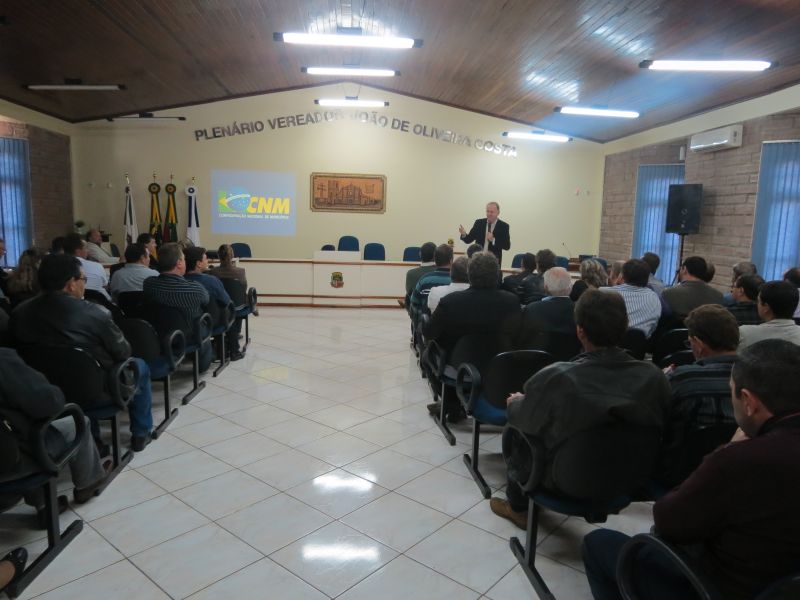 "Se os prefeitos soubessem a força que têm mudariam o Estado e o Brasil". Foi com este posicionamento que o presidente da Confederação Nacional dos Municípios (CNM), Paulo Ziulkoski, falou, durante cerca de duas horas, sobre os desafios do municipalismo, no 1° Encontro de Prefeitos e Vereadores nas Missões. O evento, que ocorreu na tarde de quarta-feira, 30 de abril, na Câmara de Vereadores, em São Miguel das Missões, foi parte das festividades alusivas aos 26 anos de emancipação político-administrativa do município e da 4ª Expofeira. Paulo Ziulkoski também pediu a mobilização da região na XVII Marcha a Brasília em Defesa dos Municípios, que acontece entre os dias 12 a 14 de maio, reiterando que é fundamental a união dos prefeitos para mudar a realidade econômica das prefeituras.