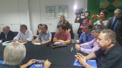 Dirigentes das Associações Regionais gaúchas se reuniram na sede da Federação das Associações de Municípios do RS (Famurs), em Porto Alegre, na quarta-feira (17/1). Entre eles, o presidente da Associação dos Municípios das Missões (AMM), Brasil Antonio Sartori, que esteve acompanhado pelo prefeito de Dezesseis de Novembro, Ademir Gonzato.