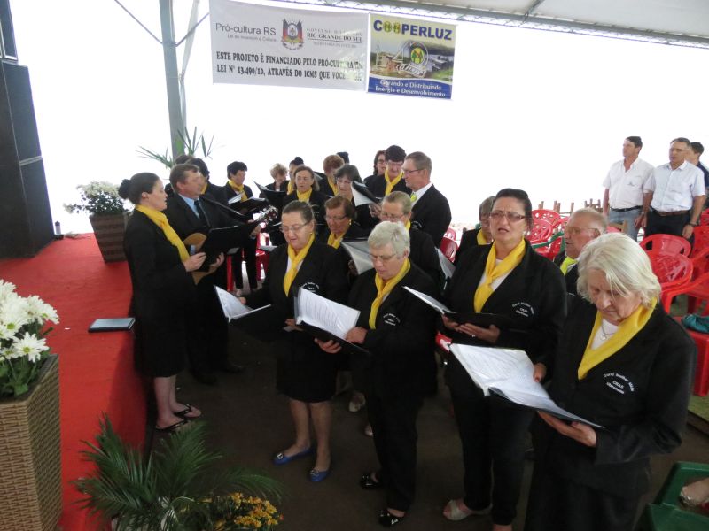Emoção. Este foi o sentimento que tomou conta dos anfitriões e dos convidados na cerimônia de abertura da 2ª Expo Ubiretama, na tarde de sexta-feira, 17 de outubro. Em todos os discursos proferidos, o destaque foi a união de forças da administração, entidades, colaboradores e especialmente da comunidade local, que tornou possível a realização e o sucesso do evento. “Ubiretama é um lugar em que todos se sentem bem ao chegar aqui. A Expo é uma oportunidade para os visitantes conhecerem as potencialidades e a diversidade de tudo o que produzimos em nosso município”, evidenciou o prefeito municipal, Celso Wiede ao enfatizar que “graças ao esforço conjunto de todos, inclusive das administrações anteriores, e principalmente da comunidade católica, foi possível a concretização da 2ª edição da Expo, já consagrada como o maior evento ubiratanense”. Os convidados foram contemplados com a belíssima apresentação do Coral da Melhor Idade do município, que contou com a participação do prefeito Wiede, nos cantos e no violão.