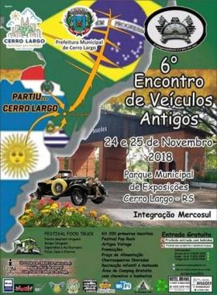 Nos dias 24 e 25 de novembro, no Parque Municipal de Exposições de Cerro Largo, acontecerá mais um encontro de veículos antigos com integração mercosul.