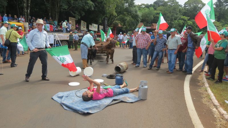 Como uma forma de protesto e indignação pelo preço do litro de leite, vendido por até trinta centavos, alguns produtores se deitaram no asfalto segurando galões de leite, no trevo de acesso à Guarani das Missões. Faixas com diferentes manifestações, também marcaram a mobilização, que iniciou na praça da cidade e seguiu com caminhada até a entrada do município, na BR 392. No local, teve o bloqueamento do trânsito, apresentação da pauta de reivindicações e distribuição gratuita de leite para moradores de mais de 70 municípios da região.