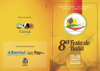 Clima de alegria marcou a abertura da 8ª Festa do butiá, em Giruá, na quinta-feira, 13 de março. Fruto símbolo do município, e iguaria exótica, o butiá impulsiona uma das mais singulares festas típicas do interior do Estado. A programação do evento, que é uma iniciativa do governo municipal e acontece entre os dias 13 a 16 de março, oferece diversificados atrativos como a Escolha da Coleção Giruaense de Artesanato; 3ª edição do concurso Balaio de Sabores; Desfile de modas com a temática 'Butiá - Cores e Formas da Nossa Terra'; Show Cultural Latino Americano, com Dante Ramon Ledesma; Apresentação cultural-Tango; programação especial para a terceira idade; entre outras inúmeras opções, que prometem animar todos os públicos.