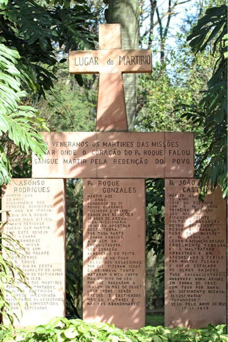 Padre Roque Gonzales, filho de nobre família paraguaia, fundou os quatro primeiros desses povoados. Quando criava o 5º povoado que seria em homenagem a "Todos os Santos do Caaró" foi morto. Junto com ele estava o Padre Afonso Rodrigues, que também tombou. Os padres foram mortos a mando de Cacique Nheçu, que não aceitava a presença dos "homens de preto" na região. Os padres foram esquartejados e colocados dentro da rústica igreja do povoado onde foi ateado fogo. Os revoltosos seguiram em direção a outro povoado onde mataram o padre jesuíta, João de Castilhos. Esta é uma parte da história sobre o local, que atrai fiéis e turistas de várias partes do país.