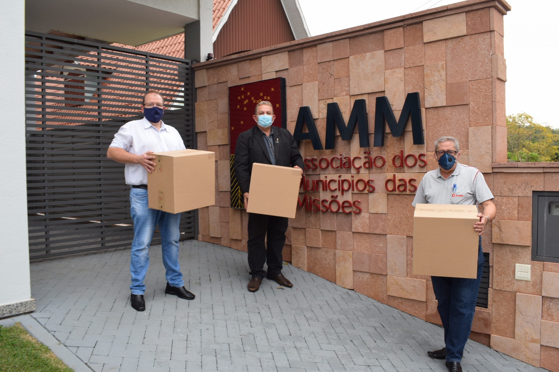 Presidente da AMM, Prefeito de Dezesseis de Novembro Ademir Gonzatto, recebeu da ALIBEM, na manhã da última quinta-feira (21), a doação de 24.000 undiades de máscaras cirúrgicas e 25 litros de sanalizante para desinfecção de ambientes.