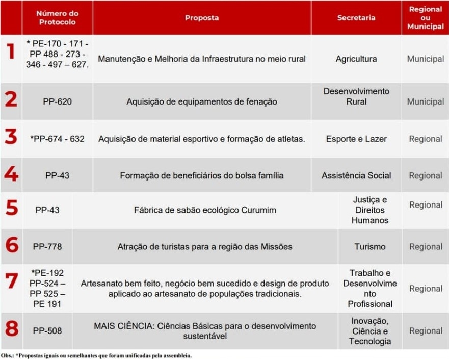 Confira as propostas incluídas na cédula do COREDE/Missões: