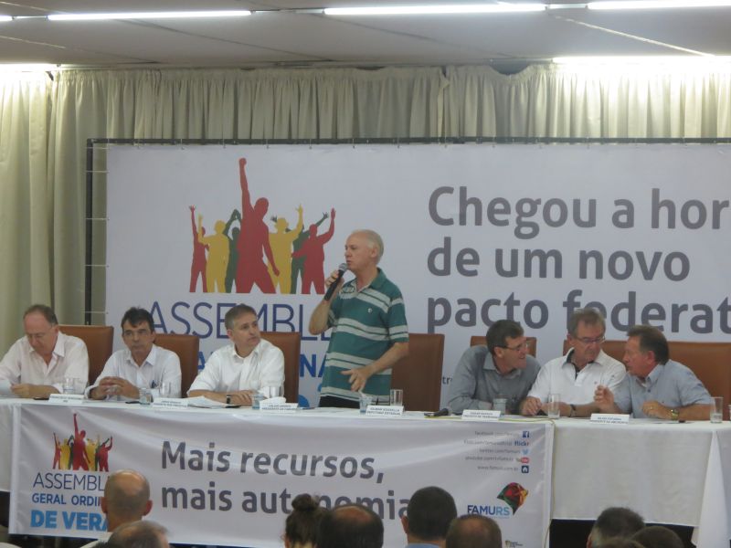 Os prefeitos, por meio da Federação das Associações de Municípios do Rio Grande do Sul (Famurs) entendem que o Pacto Federativo, inalterado há 25 anos, entre União, estados e municípios precisa ser reformulado. A Famurs defende a ampliação da parcela dos municípios e dos estados no total de impostos recolhidos no Brasil. Atualmente, o governo federal concentra 60% das receitas, e os governos estaduais dividem 25% do total, enquanto as prefeituras ficam com somente 15% dos recursos. Por isso, a proposta da Federação é aumentar de 15% para 30% a participação dos municípios e de 25% para 30% a dos estados na divisão do bolo tributário. Com esta condição, a União reduziria sua parcela de arrecadação de 60% pra 40%.