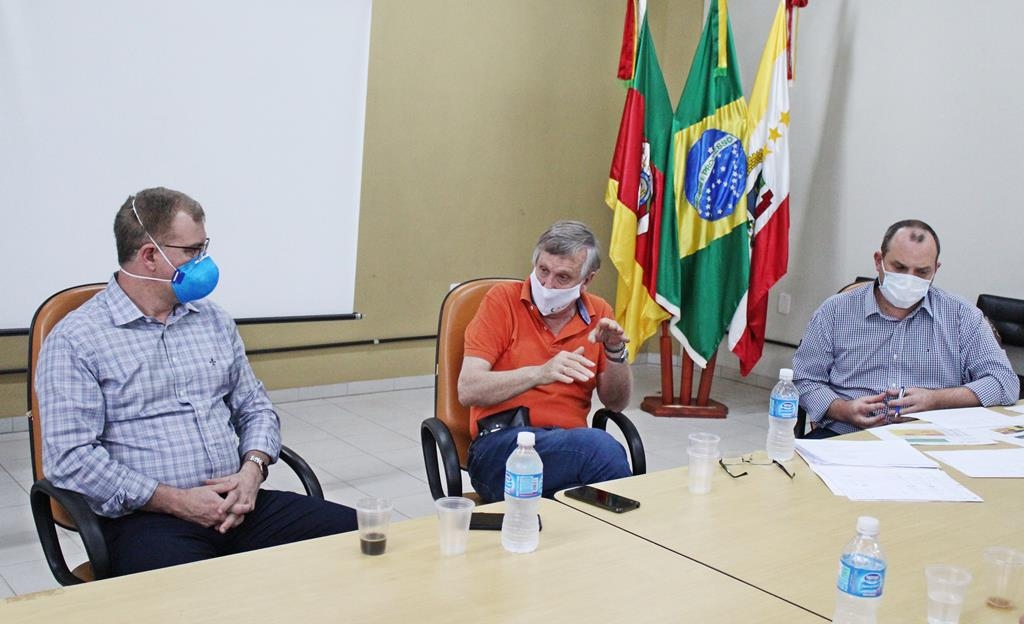 A ampliação de leitos hospitalares para o tratamento da COVID-19 voltou a ser pauta de reunião na tarde de quarta-feira (24), no auditório Centro de Saúde. O encontro contou com a presença do prefeito de São Luiz Gonzaga, Sidney Brondani; do prefeito de São Borja, Eduardo Bonotto e do prefeito de Santo Ângelo, Jacques Barbosa; chefes do executivo dos municípios que possuem os hospitais de referência para o tratamento da COVID-19 na região.