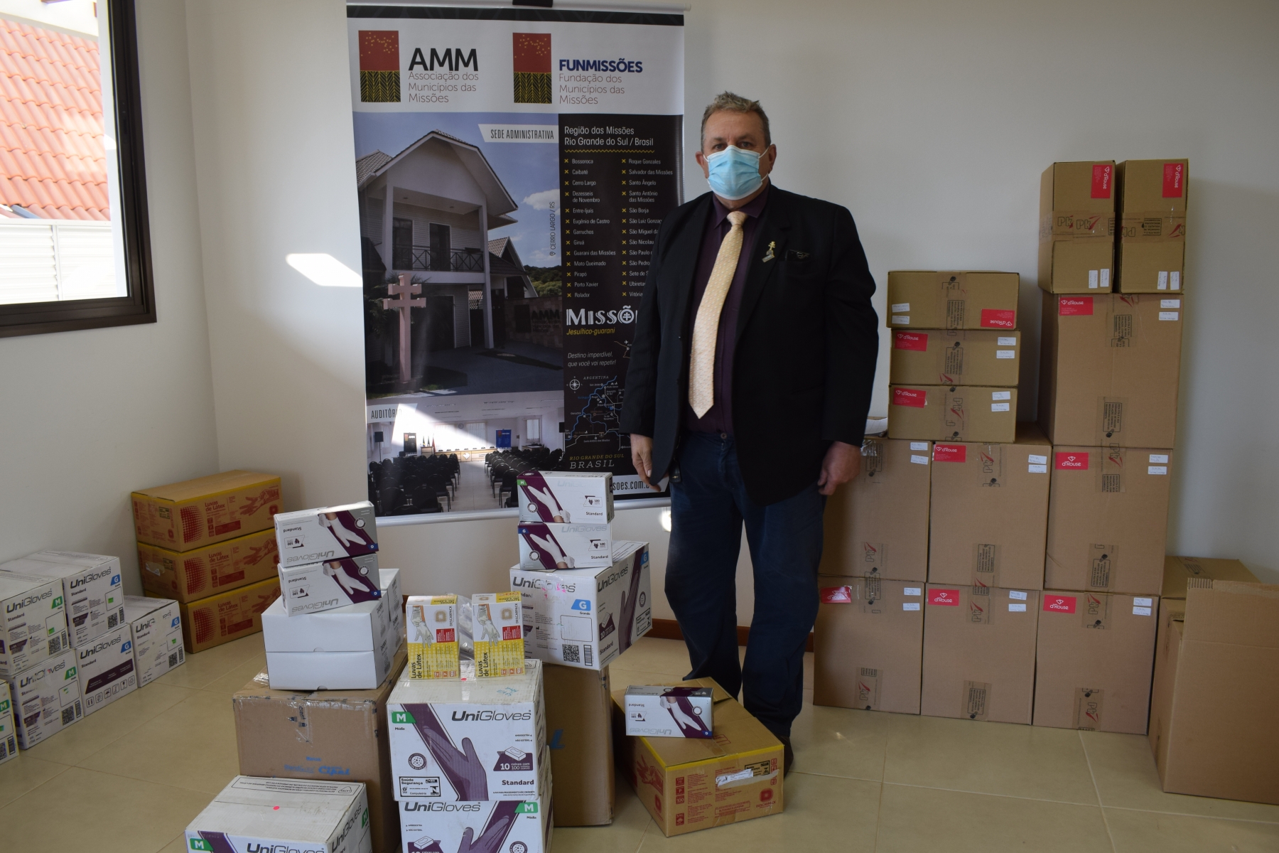 Além dessa ação em conjunto com a Alibem, com recursos da Funmissões, foram adquiridos inúmeros itens de EPI’s, que foram repassados aos municípios associados à Fundação. Firam adquiridos 260 caixas de luvas de procedimento em látex, 1.040 macacões impermeáveis, 650 óculos de proteção em acrílico.