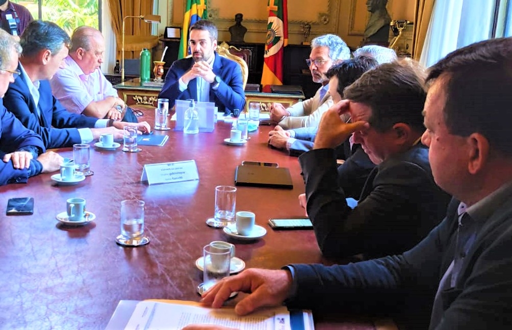 O governador Eduardo Leite reuniu-se com uma comitiva de Santo Ângelo na manhã desta segunda-feira, em encontro organizado pelo deputado estadual Eduardo Loureiro, para tratar do projeto de ampliação da pista e terminal de passageiros do Aeroporto Regional. O governador prometeu ampliar as equipes que estão fazendo a avaliação técnica do estudo e sua tramitação e aprovação nos órgãos competentes, como o Departamento Aeroportuário do Estado (DAP) e a Secretaria Nacional de Aviação Civil do governo federal.