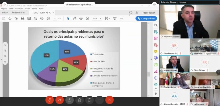 Em Assembleia Geral, realizada por videoconferência na manhã desta terça-feira (18/8), a Famurs e as associações regionais debateram sobre o resultado da pesquisa sobre o retorno das aulas. Conforme levantamento da Federação, 94% dos gestores são contra a proposta do governo do Estado em retomar as aulas presenciais dia 31 de agosto pela Educação Infantil.