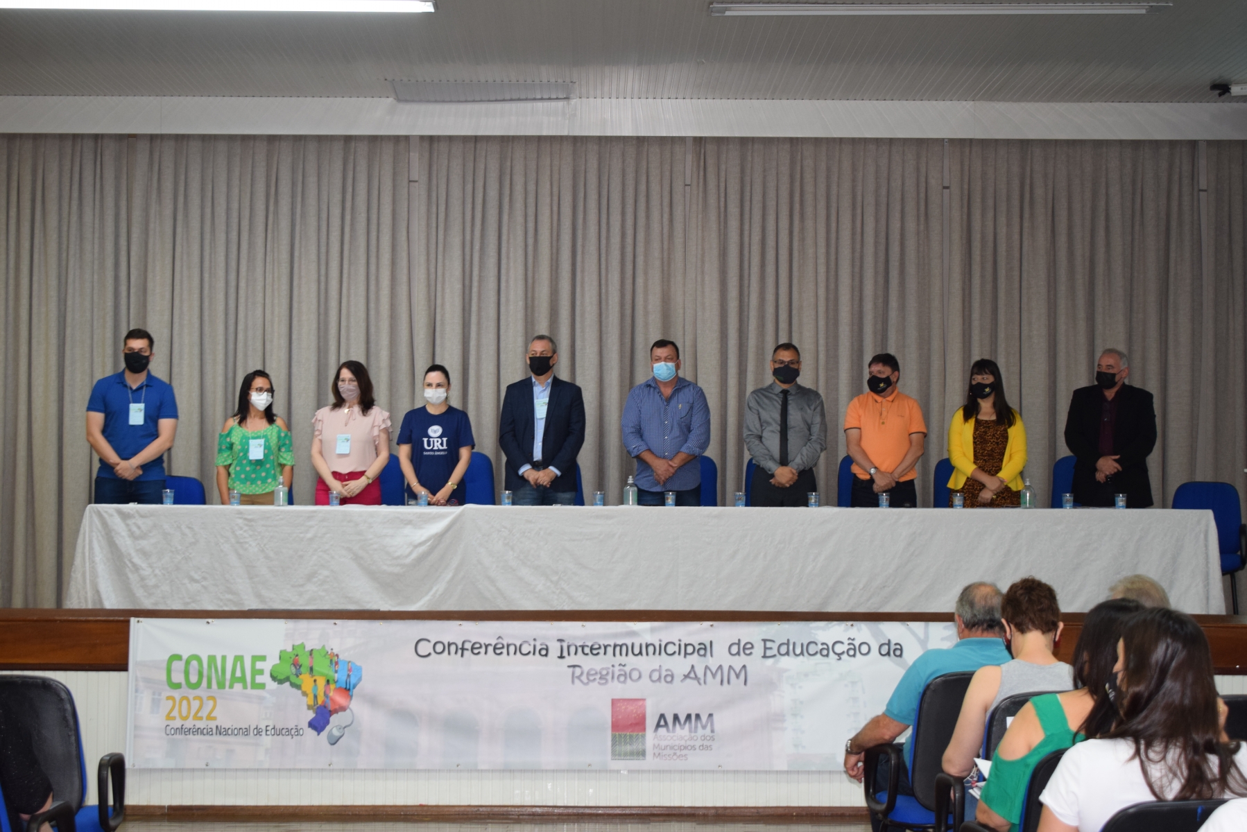 Participaram da Conferência, o presidente da AMM, Ricardo Klein; a secretária municipal de Educação de Santo Ângelo e coordenadora das secretarias municipais de Educação da AMM, Eliane Carpes; vereador Valdemir Roepke, o Nanaco, representante da Câmara de Vereadores de Santo Ângelo; promotor da Promotoria Especializada de Educação, Márcio Bressan; coordenadora regional de Educação, Rosa Maria de Souza; representante da União dos Dirigentes Municipais de Educação (Undime), Odilar de Vargas; coordenadora regional dos Conselhos Municipais de Educação, Regina de Souza e o coordenador dos trabalhos da Conferência Intermunicipal, Henrique Colpo de Lima.