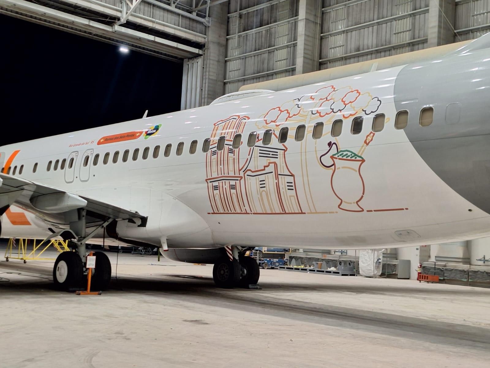 O Boeing 737-800 da GOL apresenta uma composição de elementos que o Rio Grande do Sul tem a oferecer, como as belas paisagens das araucárias, o tradicional chimarrão e o vinho - que fazem parte da cultura gaúcha, e ainda uma belíssima imagem da Ruína dos Sete Povos, localizada dentro do Parque Histórico Nacional das Missões.