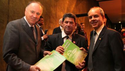 Na foto: Paulo Ziulkoski (Presidente da CNM), Prefeito Ernesto de Lima (Santo Antônio das Missões) e Prefeito Mariovane Weis (Presidente FAMURS).