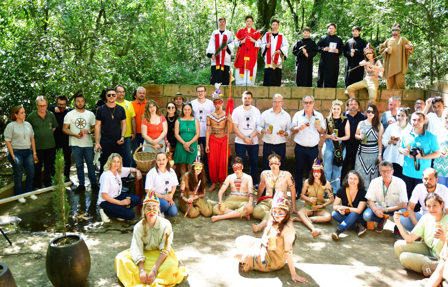 Os influenciadores que somam mais de 320 mil seguidores no Instagram, chegaram ao Santuário do Caaró, acompanhados do gerente de Relações Governamentais da GOL, Ciro Camargo, e Adonai dos Reis e Silva, também da companhia aérea, e assistiram à encenação do preparo da água benta na fonte, considerada pela sabedoria popular uma água milagrosa. No local, alunos da rede de ensino de Caibaté encenaram o preparo da água.
