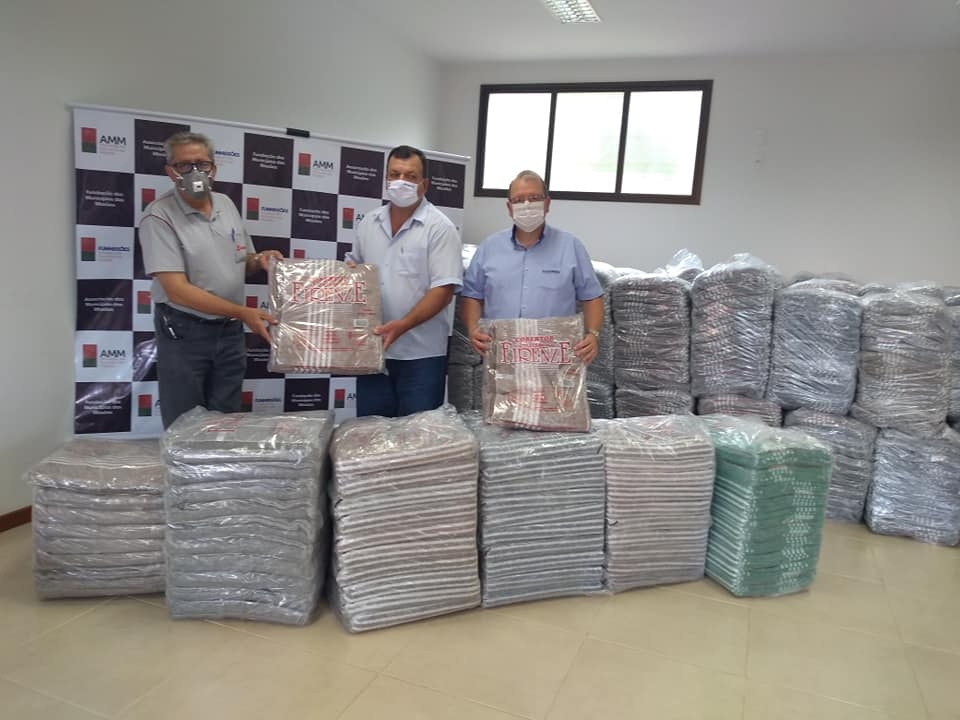 Na tarde desta quarta-feira 14/04, o Presidente da Associação dos Municípios das Missões, Ricardo Klein, Prefeito de São Nicolau, recebeu das mãos do superintendente da ALIBEM, Jucelino Gonçalves, 1.070 cobertores de casal, a serem distribuídos aos municípios que integram a AMM.