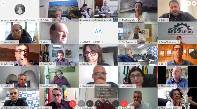 Nos próximos dias, os municípios gaúchos terão de se adaptar a um novo decreto estadual, que vai regrar medidas de distanciamento controlado para enfrentamento à pandemia do novo Coronavírus. O novo modelo, que varia de acordo com especificidades regionais, foi discutido na tarde desta quarta-feira (29/4) em reunião virtual entre a diretoria da Famurs, o governador Eduardo Leite, o vice-governador Ranolfo Vieira Jr, o secretário de Articulação e Apoio aos Municípios Agostinho Meirelles, a secretária estadual de Saúde Arita Bergmann, a secretária estadual de Planejamento Leany Lemos e diversos prefeitos e prefeitas do Rio Grande do Sul.