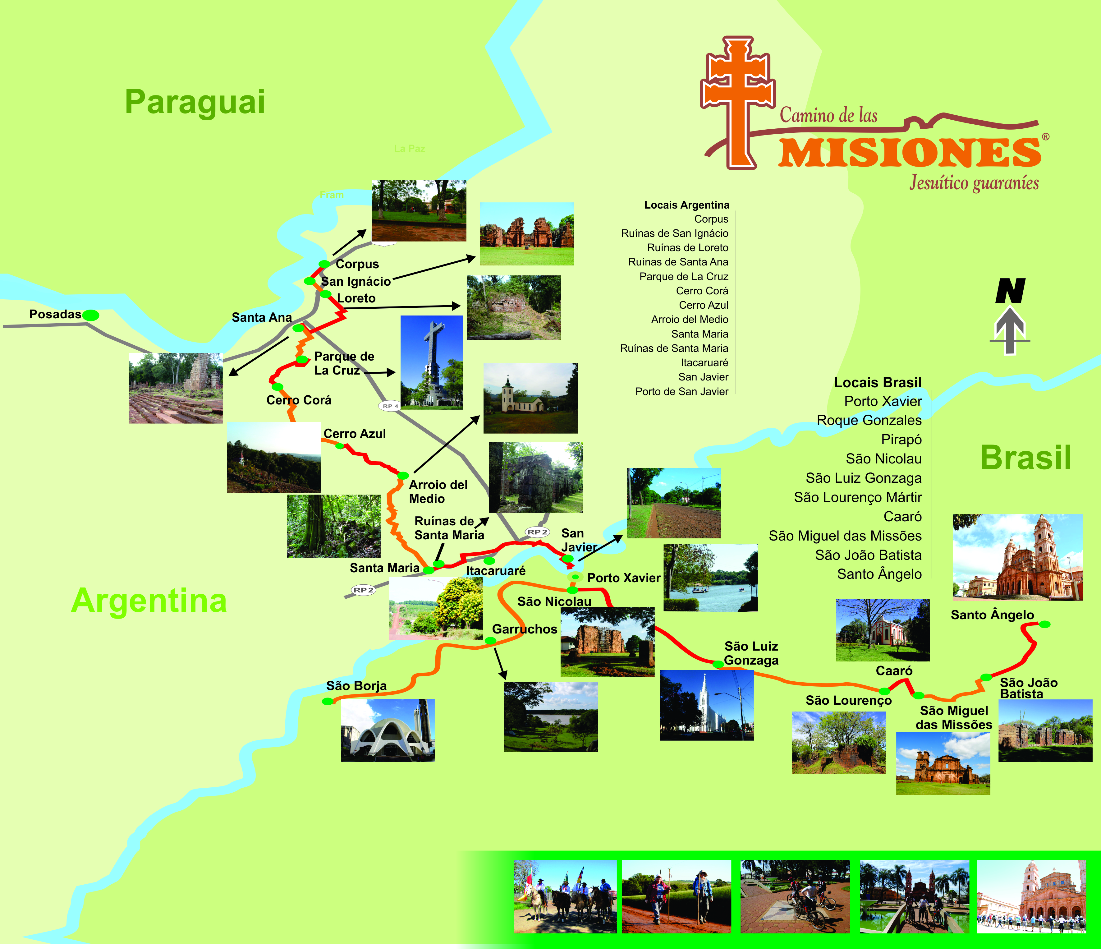 ROTEIRO BRASILEIRO: Porto Xavier; Assunção do Ijuí (Roque Gonzales) e Pirapó. São Nicolau; São Luiz Gonzaga/São Lourenço; Caibaté/Caaró; São Miguel das Missões, São João Batista/Entre-Ijuís e Santo Ângelo se unirão ao roteiro já existente no Brasil.