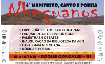 A legitimidade da luta travada pelo líder Guarani Nheçu, em defesa da cultura indígena será reafirmada por meio de debates, palestras e música e versos nos dias 15 e 16 de novembro. É a 5ª edição do Manifesto, Canto e Poesia Nheçuanos, que acontece em Roque Gonzales, na região das Missões. A comissão organizadora do evento garante momentos de cultura e um novo olhar sobre a história da região e dos índios Guaranis, com a inauguração da Biblioteca Pública Cacique Nheçu; exposição de artefatos e artesanato Guarani; 5ª Cavalgada Nheçuana Guarani; shows; lançamento de livros, entre outros atrativos.
