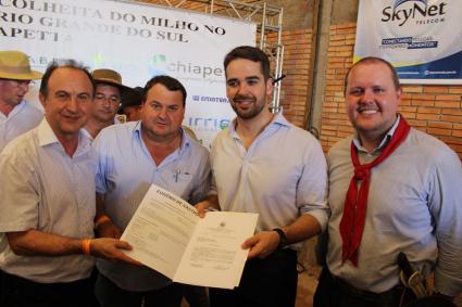 Compareceram à solenidade os secretários Covatti Filho (Agricultura, Pecuária e Desenvolvimento Rural) e Juvir Costella (Logística e Transportes), o presidente da Assembleia Legislativa, deputado Ernani Polo, o presidente da Abramilho, Alysson Paolinelli, o prefeito de Chiapetta, Éder Luís Both, o presidente da Apromilho, Ricardo Meneghetti, e o senador Luiz Carlos Heinze, entre outras autoridades.