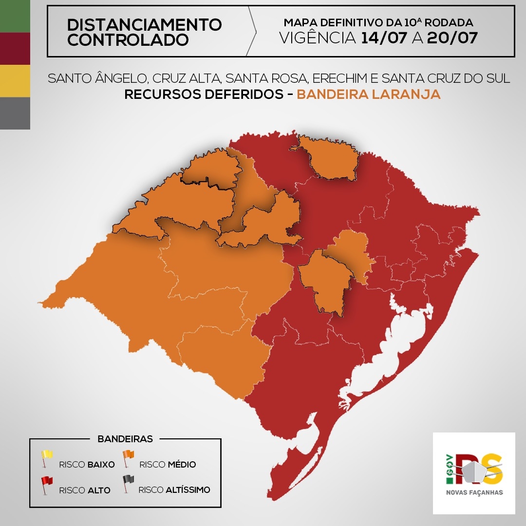 O governador Eduardo Leite anunciou agora a pouco que o recurso de Santo Ângelo e região foi acolhido pelo Gabinete de Crise e a macrorregião retorna às restrições de bandeira laranja, conforme o Distanciamento Controlado do Governo.